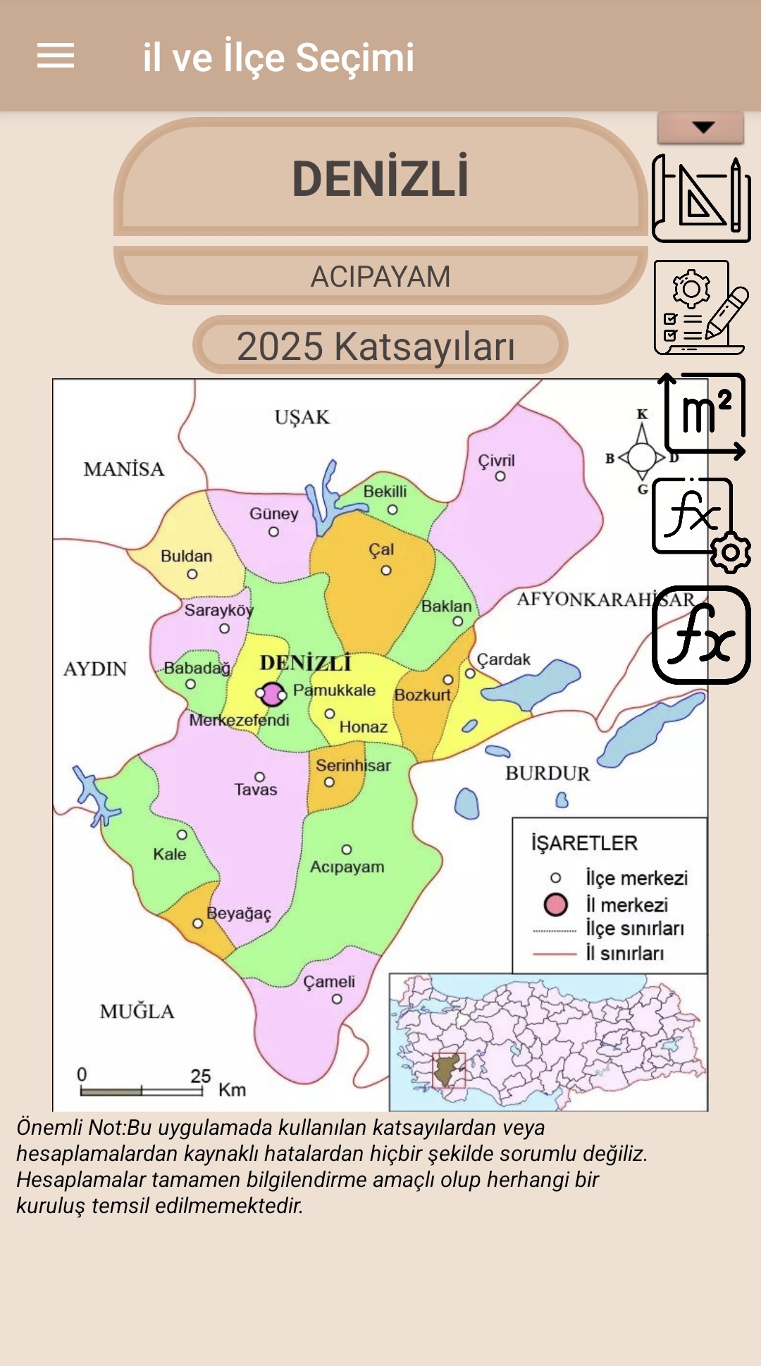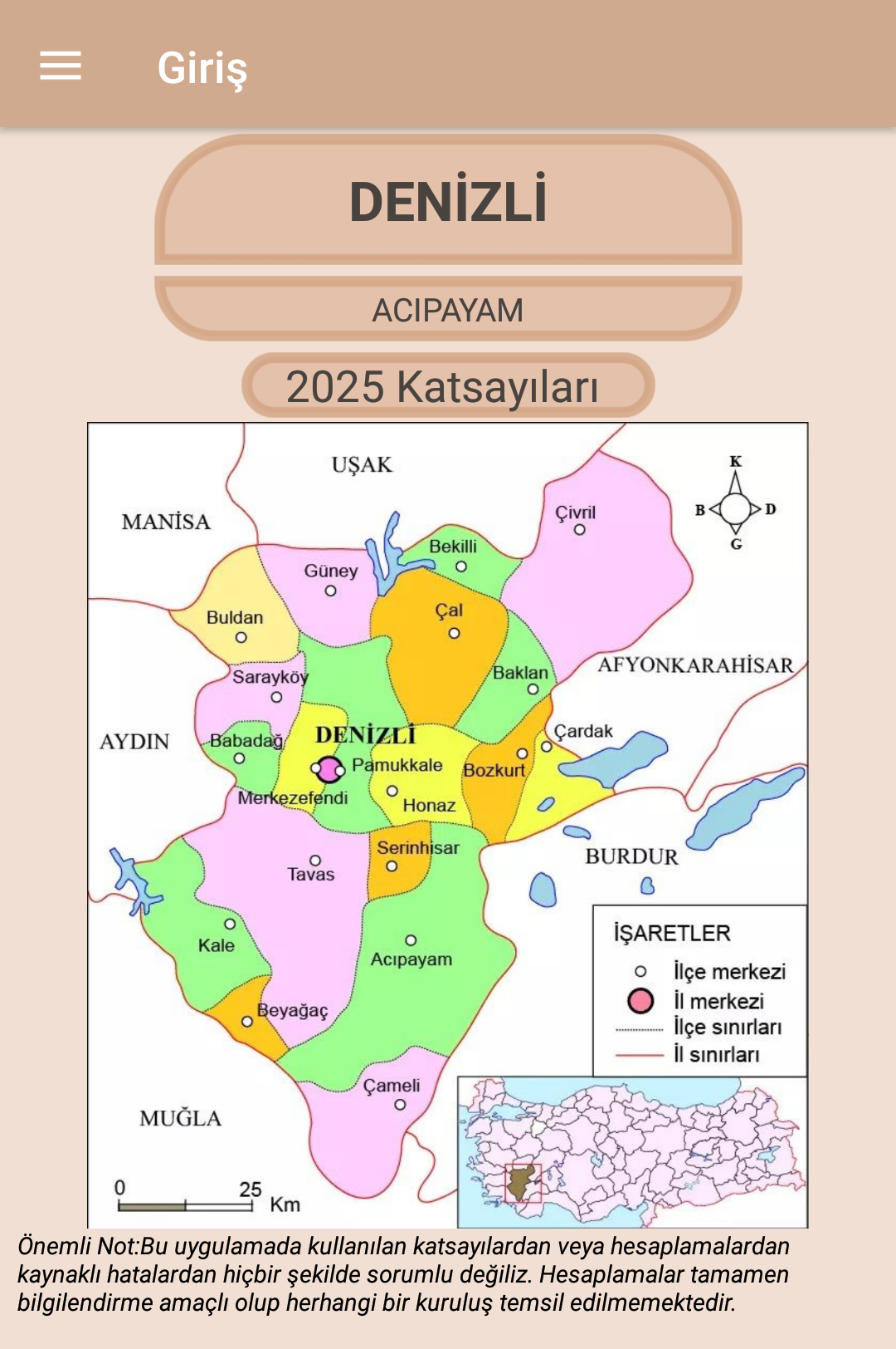 Uygulamamda tüm il ve ilçelerimize ait katsayı çarapnalarına göre hesap yapılmaktadır.