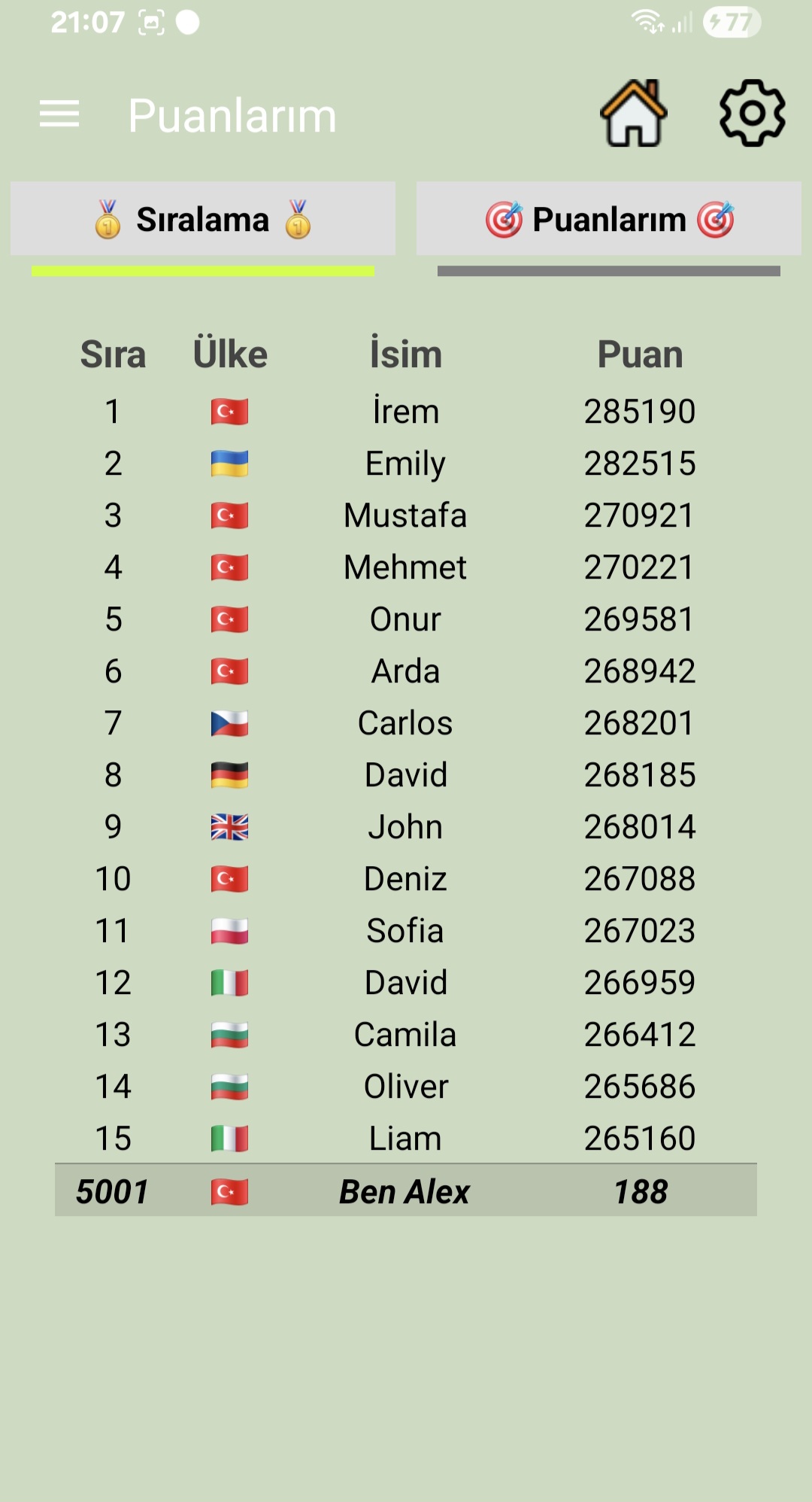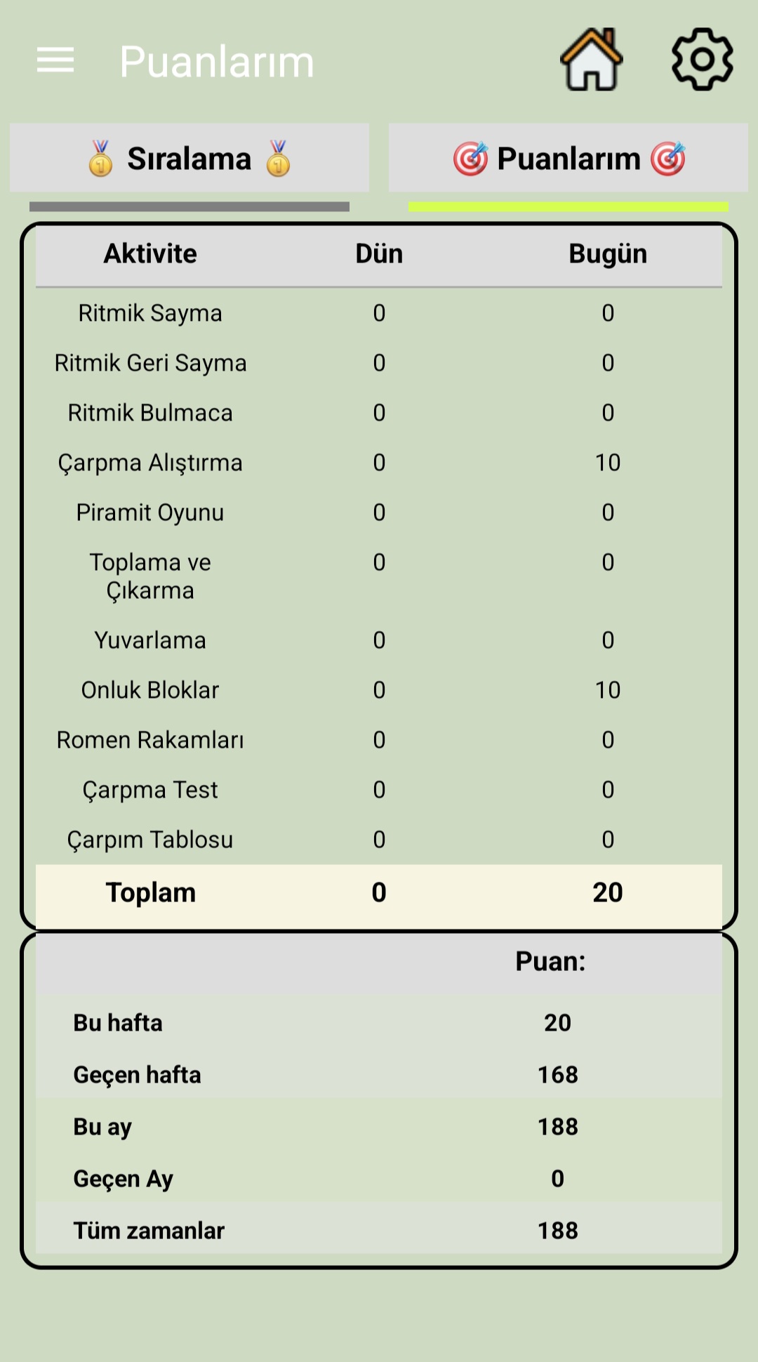 -Puanlarım bölümü(bu bölümde öğrencinin sıralamasını istatistik sekmesinde günlük, haftalık, aylık puanlarını gösterir).