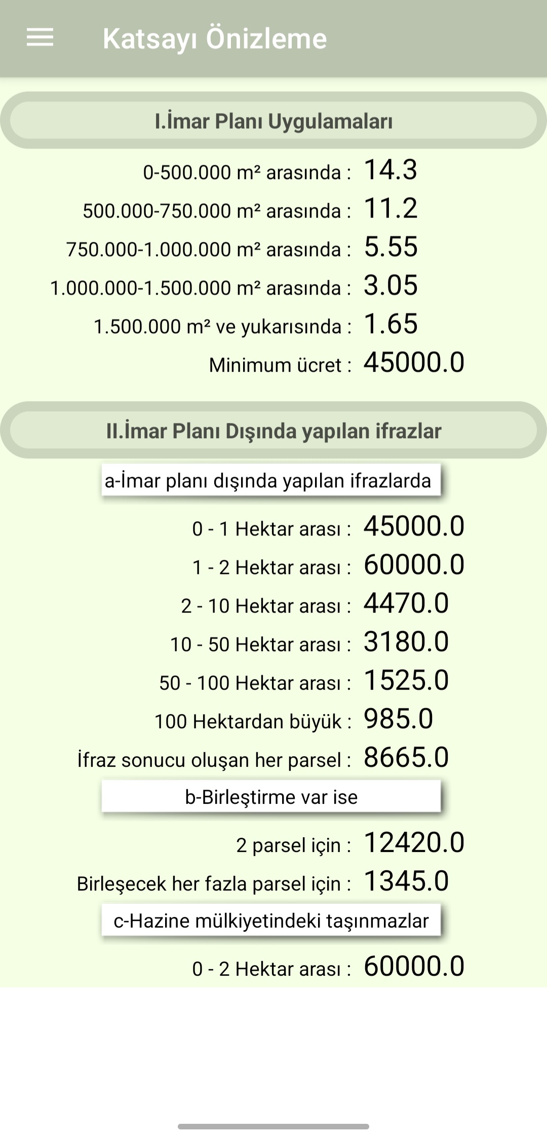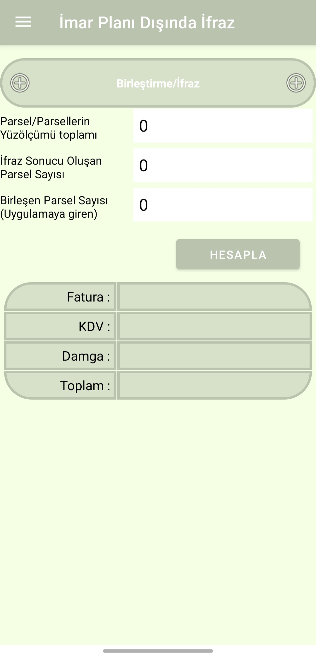 Büro tarafından yapılan (ifraz, tevhit, kamulaştırma vb.) işlemlerine ait ücretinin pratik olarak hesaplanması için tasarlanmıştır.