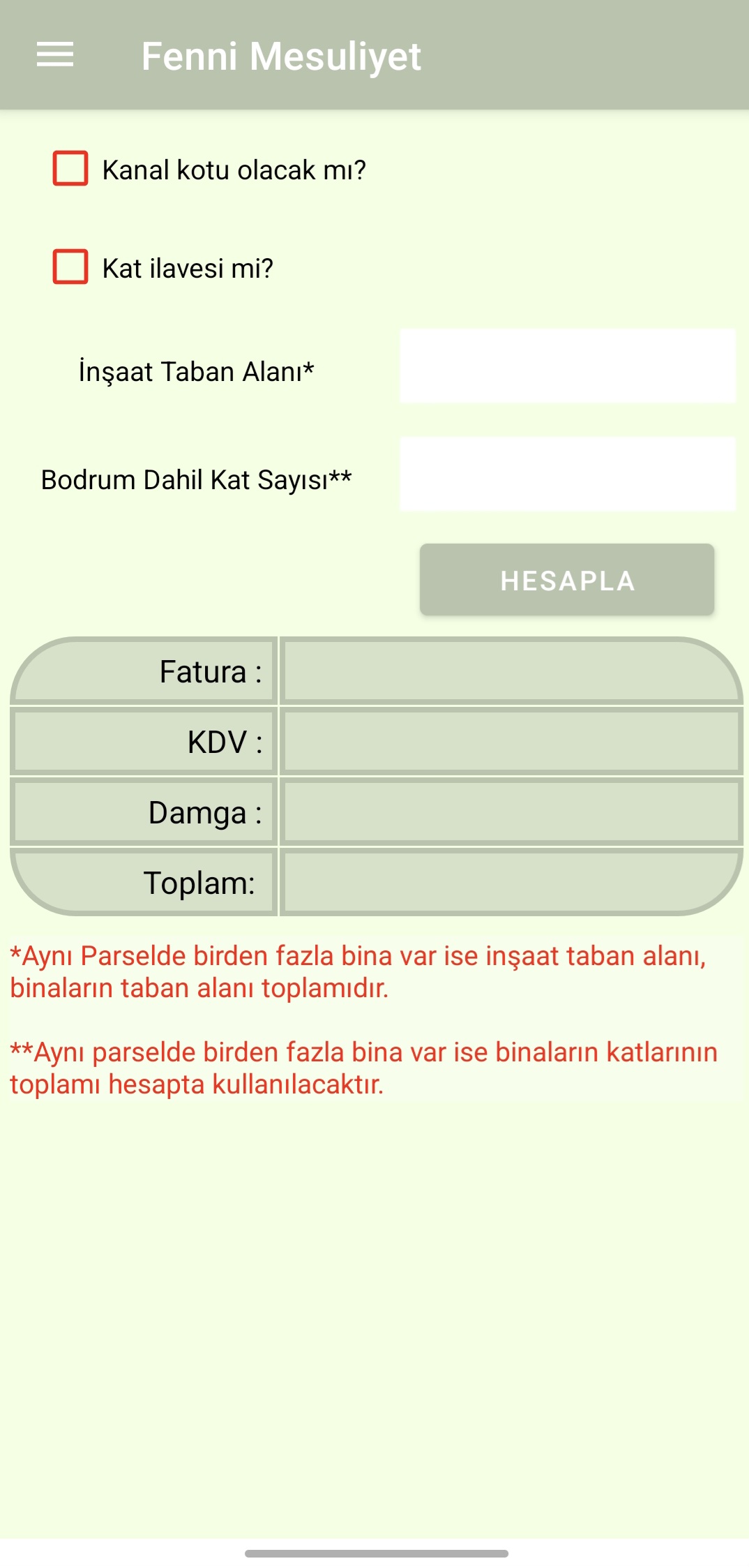 Bu uygulama Serbest Harita ve Kadastro Mühendislik Büroları için Oda ücretlerini kolay ve pratik olarak hesaplamaları için tasarlanmıştır.